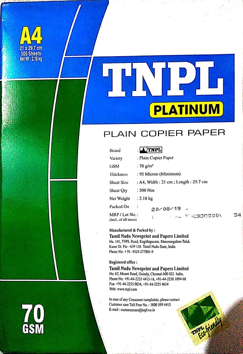 TNPL A4 COPIER PAPER 70 GSM 500 SHEETS 1 REAM